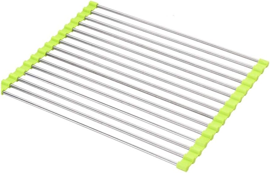 It can air-drying any washed tableware, cookware, bakeware, stoneware, flatware, kitchenware and fragile glassware,which looks great.PRODUCT SPECIFICATIONS: Size:37*23cm , 47*23cm , 28*37cm , 47*28cmMaterial:Food grade SUS304 Stainless Steel + siliconeTube quantity: 12 pipes , 15 pipesHeat Resistance: 460°F (240°C)Color: Pink , Black , Blue , YellowWeight: 1kgLoad weight: 33 lbsCleaning method:clean it in hot water,or run it through the dishwasherApplicable place:roll up drying-- For holding heavy pots, fry pans, China, ceramic, porcelain-- For cooking prep works: holding cutting board, filling liquid containers (coffee cup, babies milk, etc.) or powders, pancake or cake mix, etc. makes mess right into the sink.-- For holding wet vegetable and fruits temporary like a salad colander or vegetable washing bowl. -- For holding bread, cake to dry like a cooling rack much quicker. For holding hot pots & pans, or putting frozen items to thaw, etc. -- Frees up more counter space-- Rolls up quickly and neatly into a compact cylinder to save space, stores horizontally or vertically -- Also perfect for camping, picnic, and other outdoor activities.Note:-- To avoid buying products with incorrect dimensions, please measure the kitchen sink before placing an order.-- About the product: We measure manually, the size can be an error of 1-3 cm, 【1(in) = 2.54cm】which is a problem qualité.Endue to different camera angles, there will be some color difference due to various factors, please refer to the actual product.