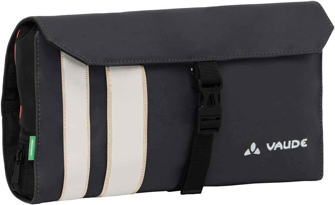 Everything is handled right here: the Socotra swaddling hanging toiletry bag keeps shampoo, body oil and other liquids leak-proof in place and also saves space in your luggage. The robust PVC-free tarpaulin material with the iconic VAUDE stripes is dirt and water resistant and therefore a real wet room friend. The thoughtful compartment organization and practical details such as toothbrush holder, integrated mirror and hanging hook make this toiletry bag an indispensable travel companion for many years. As a member with leader status at the independent organisation Fair Wear, VAUDE is committed to fair working conditions and fair wages.
