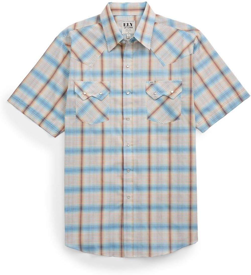 Featuring classic plaid hues, western yokes, and pearlized snaps, this Ely Cattleman Western snap-up shirt brings a touch of Western charm to every event.